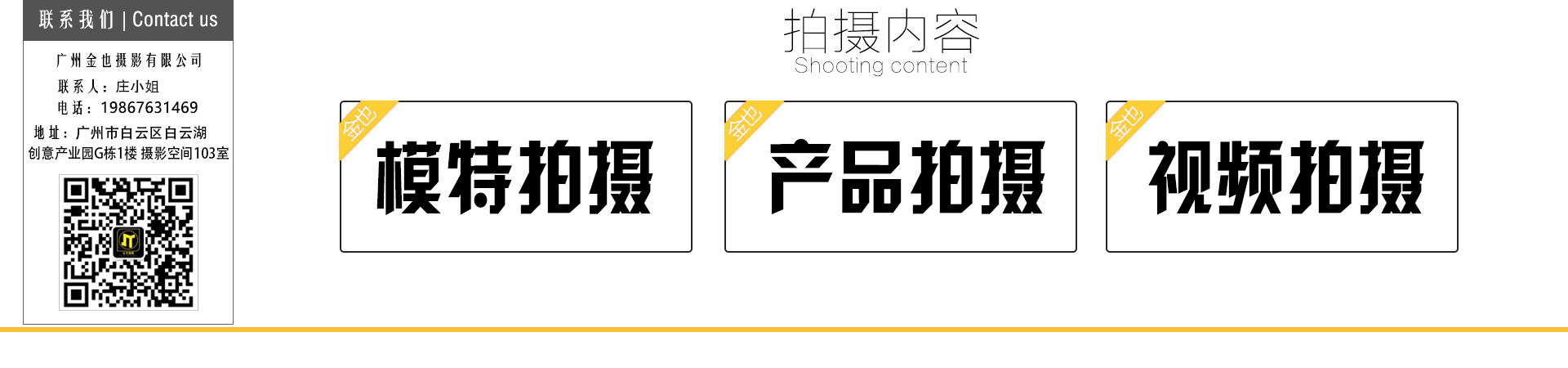 聯(lián)系人:莊小姐 電話:19867631469(微信) 地址: =廣州市白云區(qū)白云湖創(chuàng)意產(chǎn)業(yè)園G棟1樓 攝影空間103室